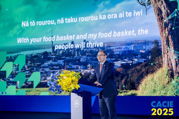 Minister for Universities and Minister of Science, Innovation and Technology, Hon Dr Shane Reti delivering remarks at CACIE Night, a key plenary event at the conference. In his remarks, he recognised New Zealand’s role as Country of Honour at CACIE and celebrated the deep and enduring education ties between New Zealand and China.