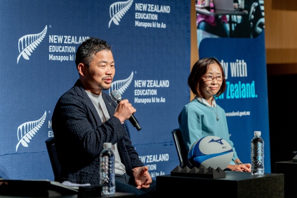 Attendees heard from inspiring guest speakers who shared personal stories and connections to New Zealand. Fumiaki Tanaka, a former Japan national rugby player and the first Japanese athlete to play Super Rugby with New Zealand’s Highlanders, spoke about his journey as an international student. Yukiko Chiba, Executive Officer and Director at Sekai Bunka Publishing, offered a parent’s perspective, reflecting on her child’s life-changing experience studying at a New Zealand high school.
